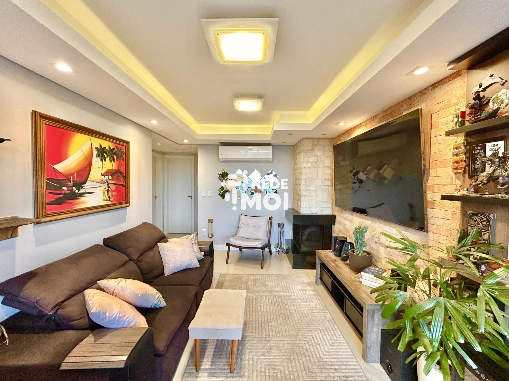 O imóvel conta com comodidades como gás individual, lareira, aquecimento a gás, ar condicionado, churrasqueira, proporcionando conforto e segurança. Além disso, a presença de janelas grandes permite a entrada de luz natural, criando um ambiente acolhedor.