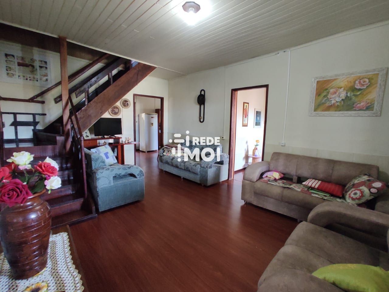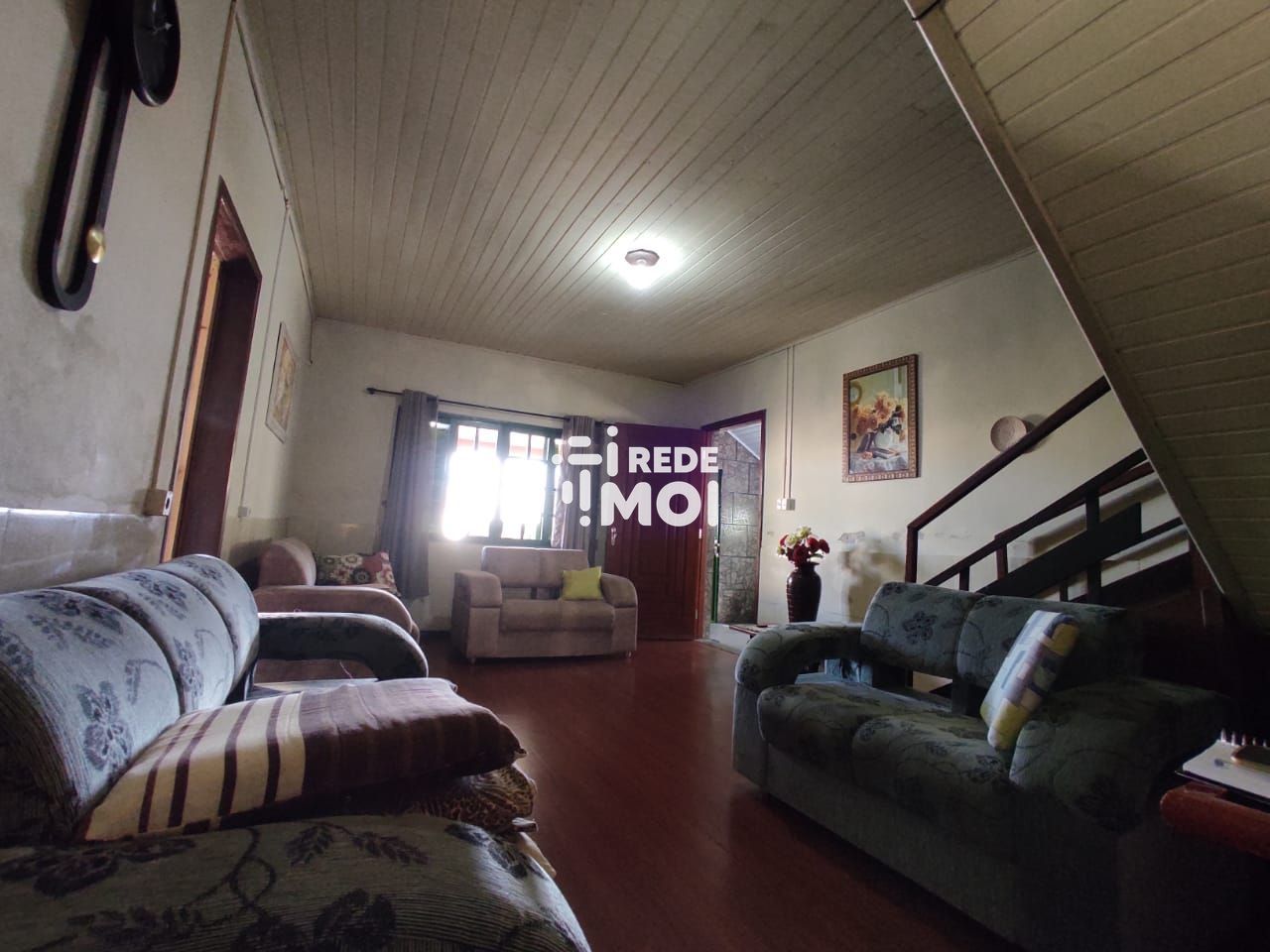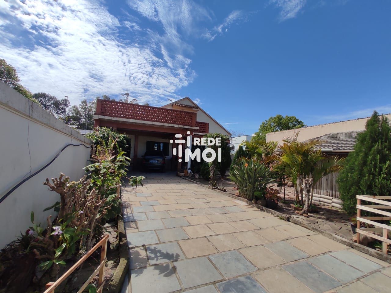 Ampla casa com três dormitórios e suíte, horta, churrasqueira e varanda.