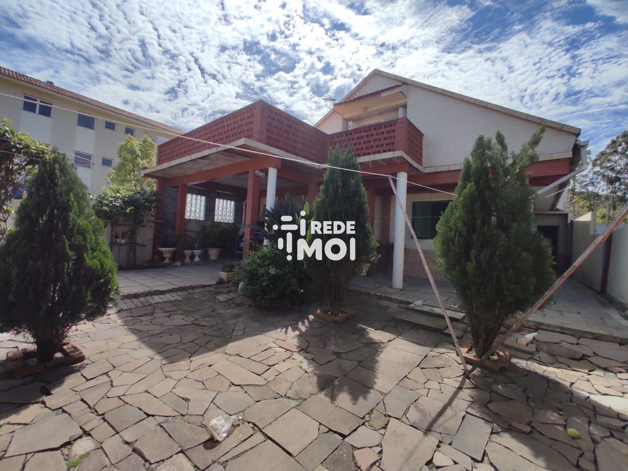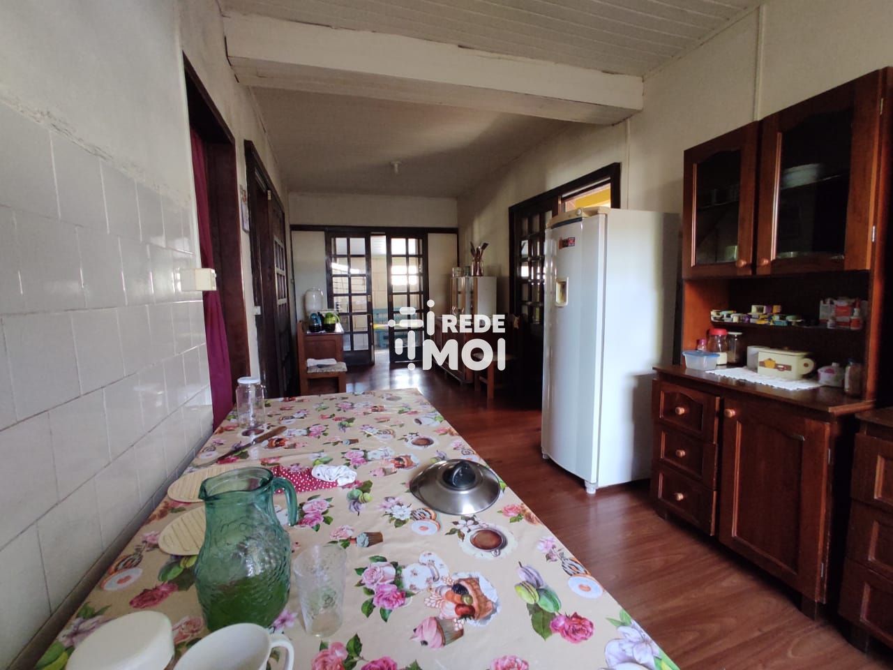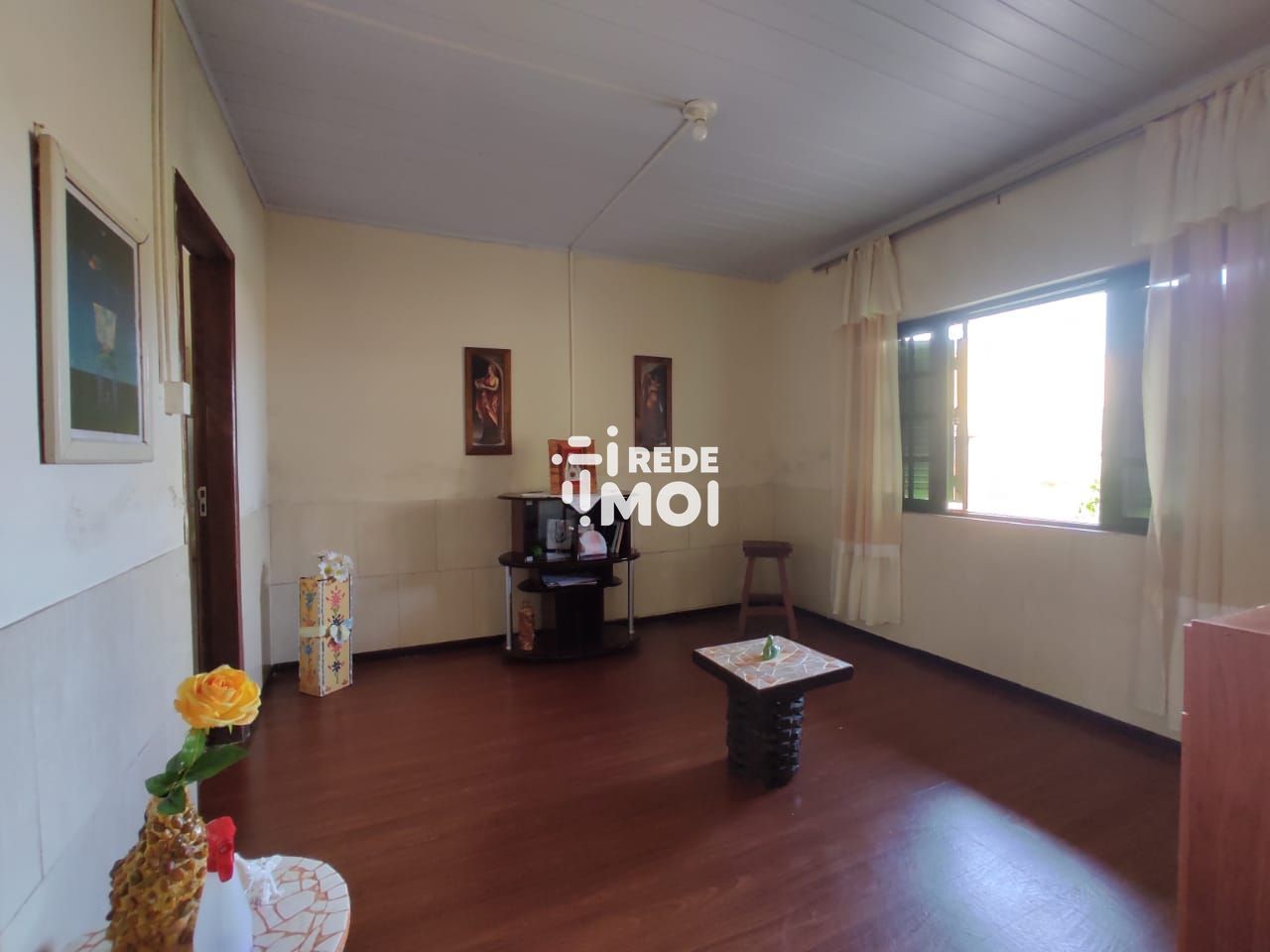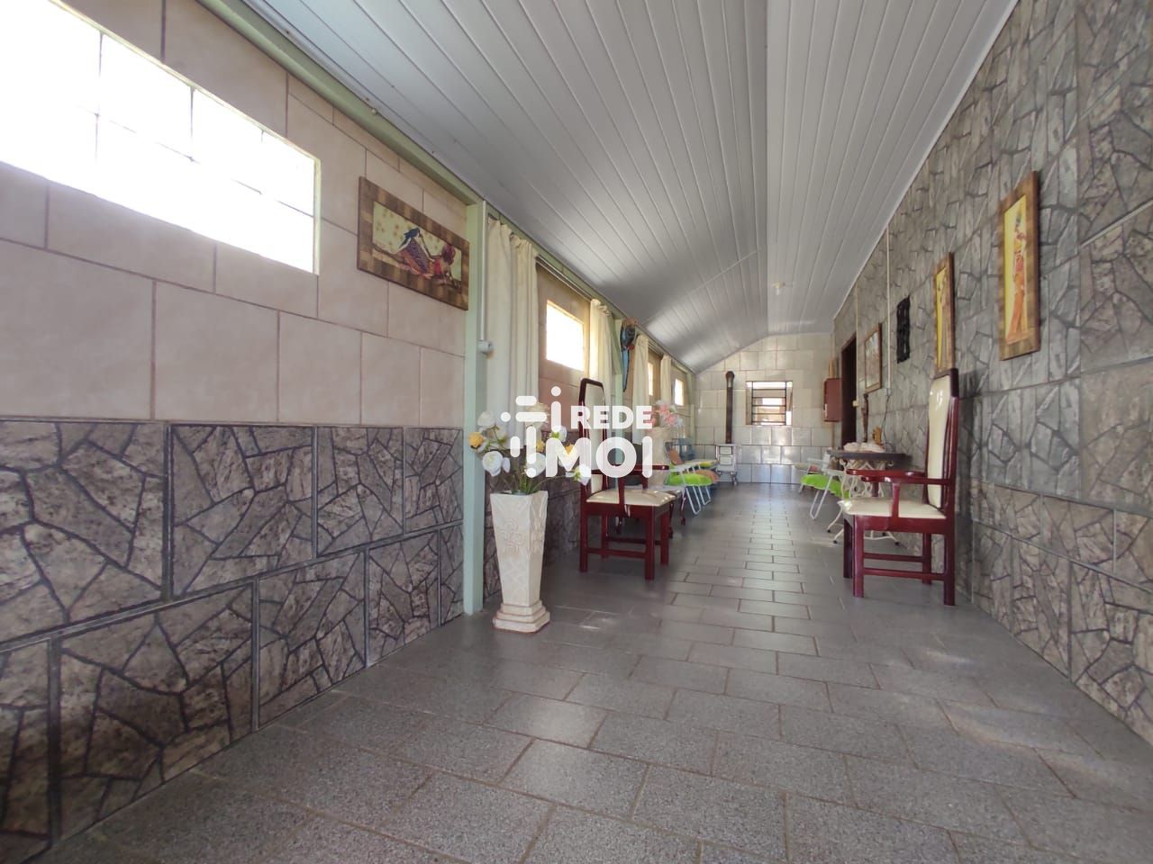 Ampla casa com três dormitórios e suíte, horta, churrasqueira e varanda.